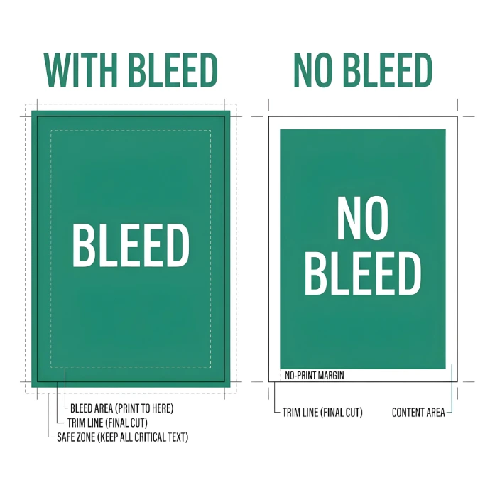 Always include a 3mm bleed for any printed product to avoid white edges after cutting
